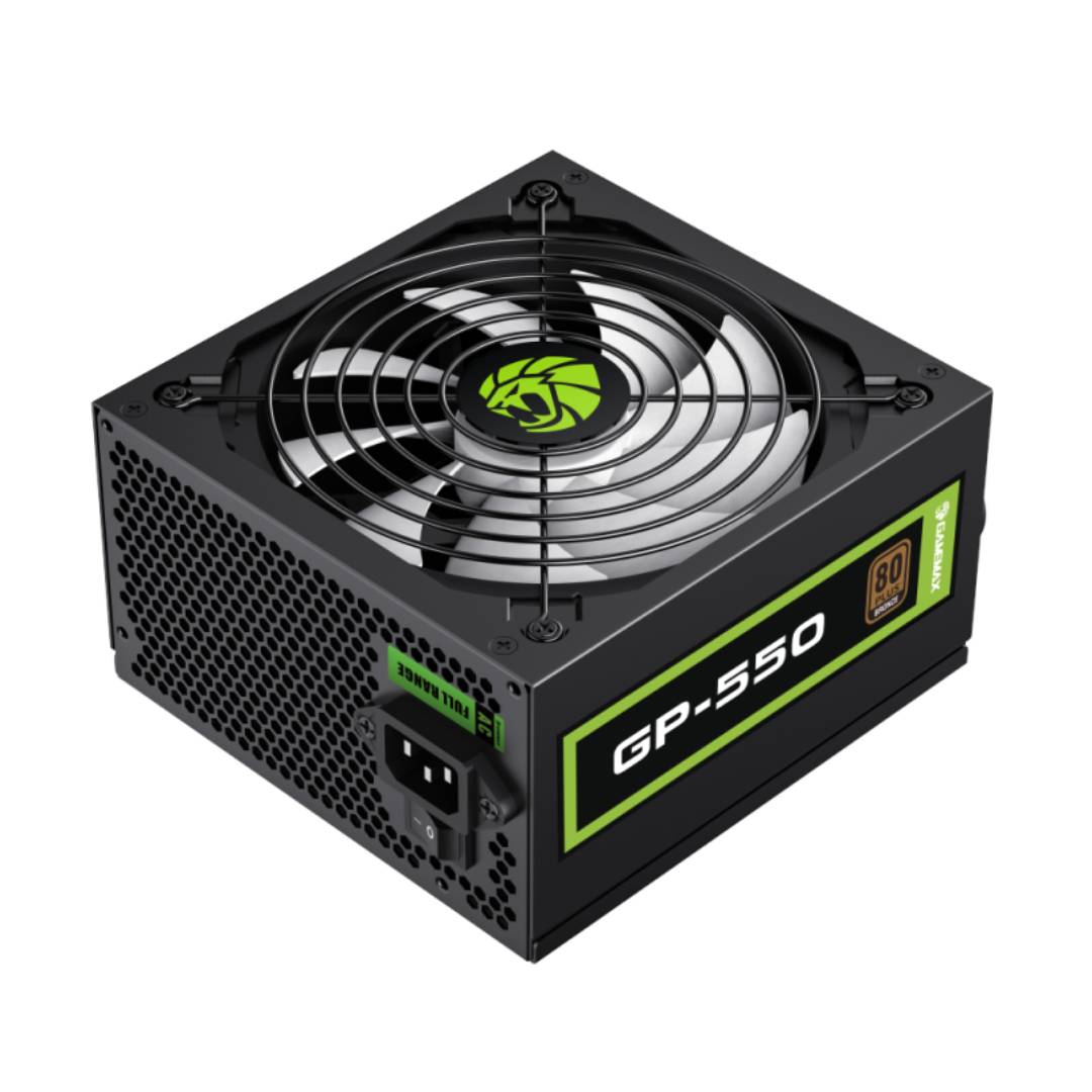 Fuente de Poder Gamemax GP550 80 Plus Bronze, chasis en acabado negro con cableado mallado full black