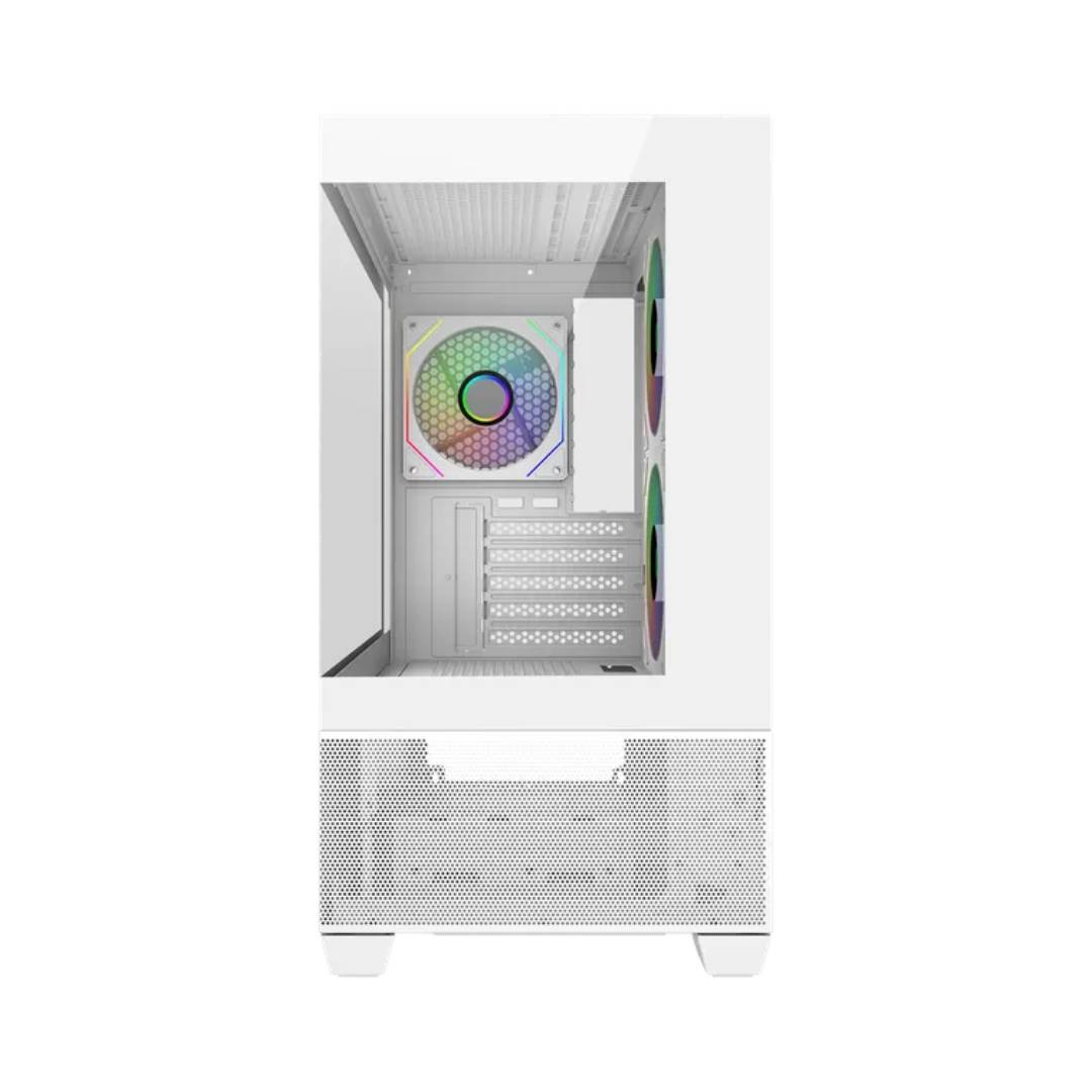 El gabinete Cooler Master Elite 490 – White es una opción diseñada para usuarios que buscan un chasis compacto y funcional para configuraciones Micro ATX y Mini-ITX. Su diseño en color blanco con panel lateral de vidrio templado permite exhibir el interior del equipo, mientras que la iluminación RGB programable añade un toque personalizable y moderno. Este gabinete ofrece un buen equilibrio entre espacio para componentes y opciones de ventilación, ideal para quienes desean un sistema ordenado y con buena refrigeración.