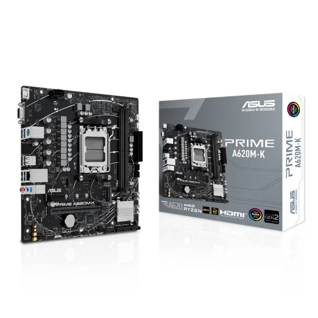 La ASUS PRIME A620M-K es una placa madre micro-ATX diseñada para aprovechar al máximo los procesadores AMD Ryzen™ serie 7000 con socket AM5. Equipada con soporte para memoria DDR5, conectividad PCIe 4.0 y almacenamiento ultrarrápido M.2, esta placa ofrece un equilibrio ideal entre rendimiento, eficiencia y personalización para sistemas de escritorio compactos y potentes. Además, incorpora tecnologías avanzadas como cancelación de ruido AI bidireccional y Aura Sync RGB para una experiencia de usuario mejorada.
