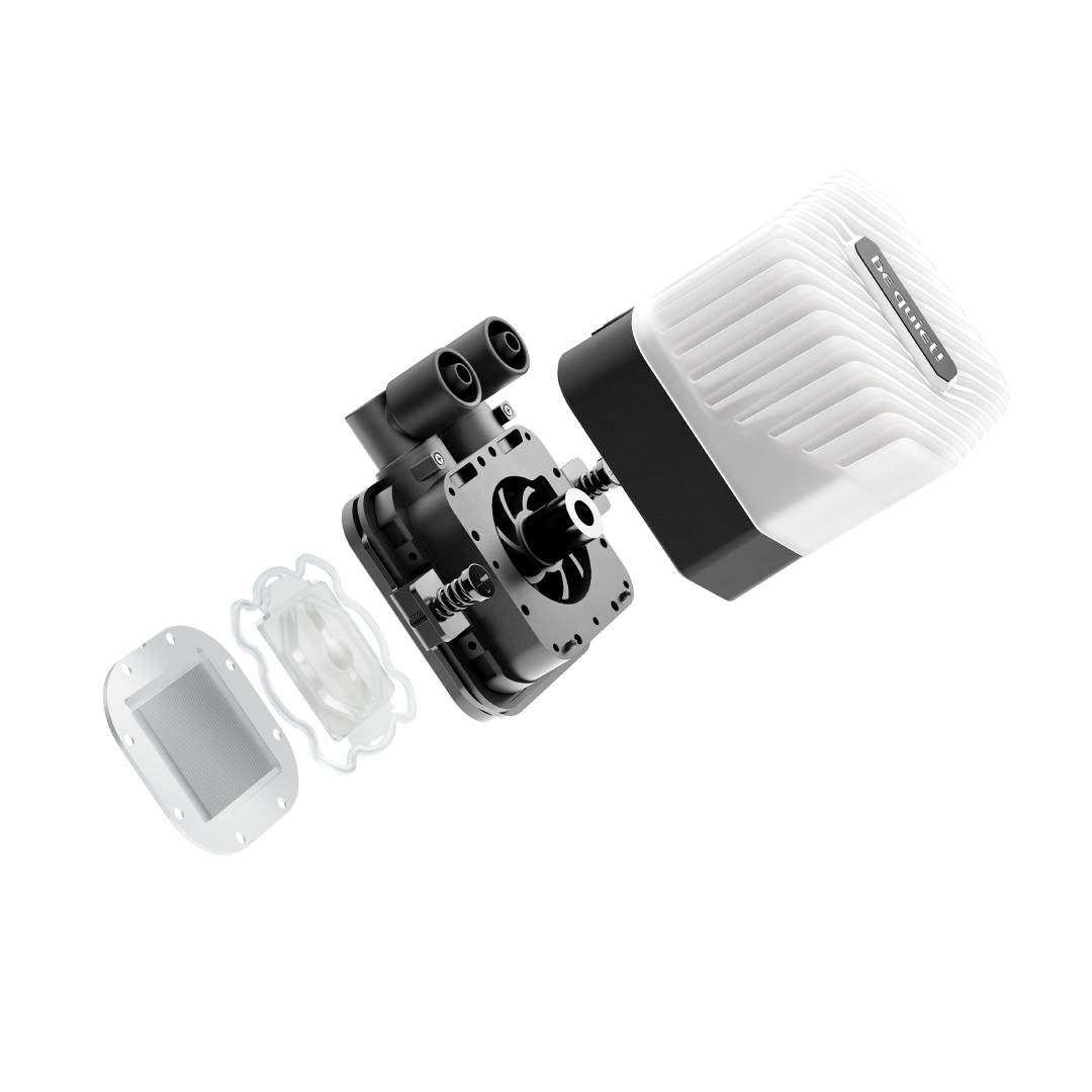 Puerto de recarga de fácil acceso y botella de refrigerante incluida para una larga vida útil