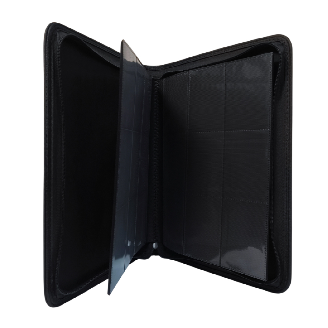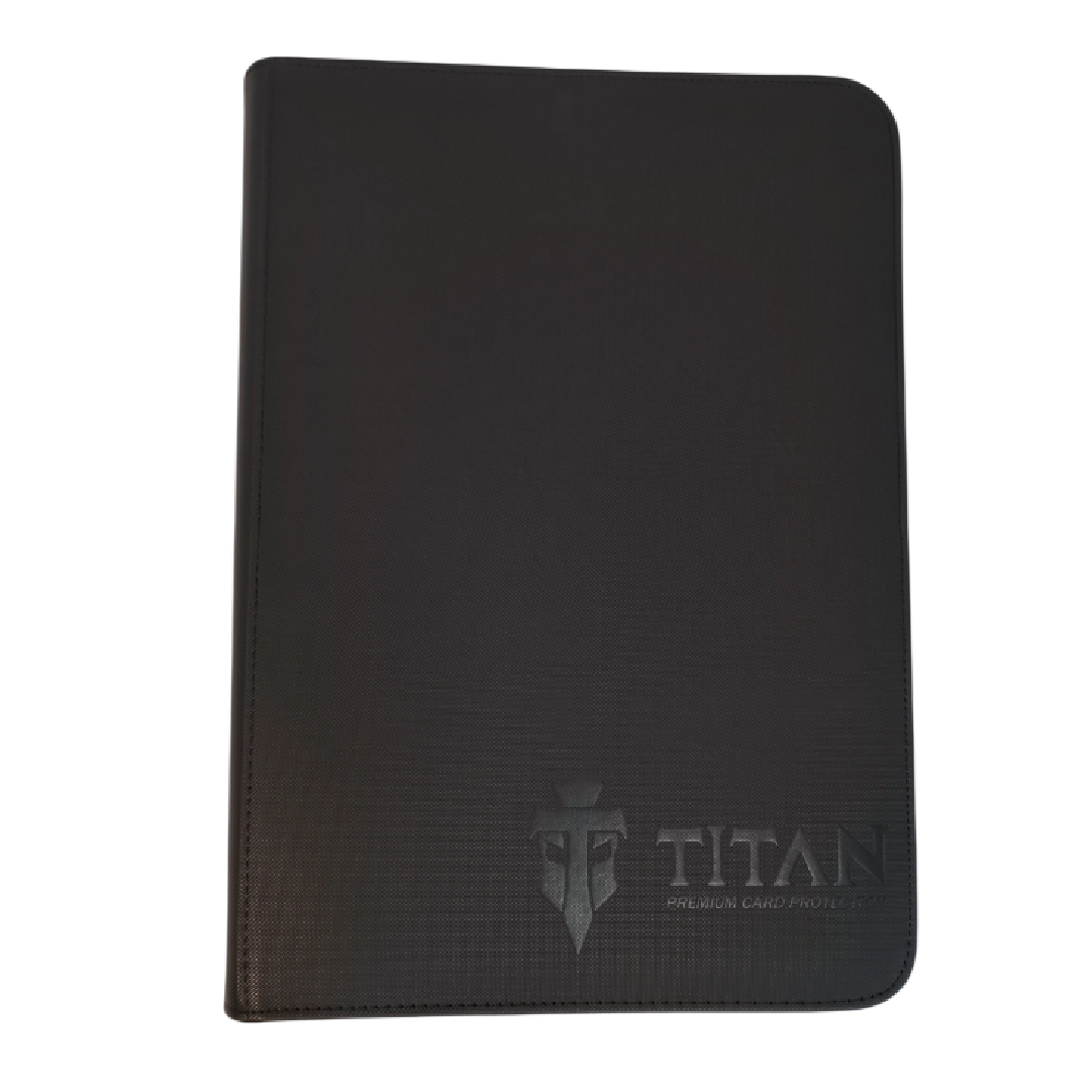 La Carpeta TCG Titan Pro Cuero Negra 9 Bolsillos con Cierre 360 es una solución de almacenamiento premium diseñada para coleccionistas que buscan una protección superior y un estilo sobrio y elegante para sus cartas coleccionables.