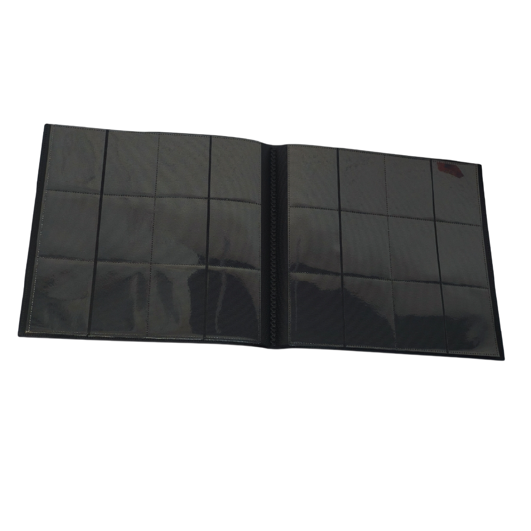 -Visualización Optimizada: Los bolsillos de carga lateral aseguran que las cartas permanezcan en su lugar de forma segura. El fondo negro mate de las páginas ofrece un contraste nítido y profesional que resalta el arte de tus cartas.