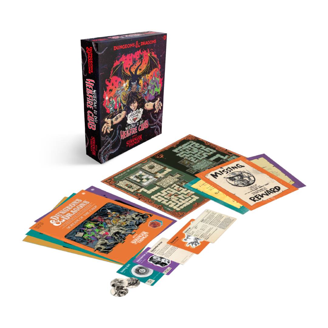 Inmersión temática total: incluye una carta de bienvenida de Eddie Munson, póster doble faz, tokens, cartas y mapas de Greyhawkins, además de aventuras temáticas ligadas a las primeras cuatro temporadas.
