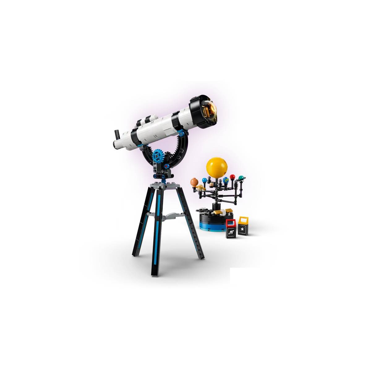 Cada juguete tiene un ladrillo con luz (pilas incluidas) que se activa pulsando un botón para proyectar imágenes sobre una superficie con el telescopio, iluminar imágenes en el microscopio o emitir luz desde el ovni. Hay 3 lentes decoradas intercambiables con imágenes de un planeta, una estrella y la Luna para proyectarlas con el telescopio o verlas al microscopio. Los modelos no se pueden construir simultáneamente. El set contiene 278 piezas.