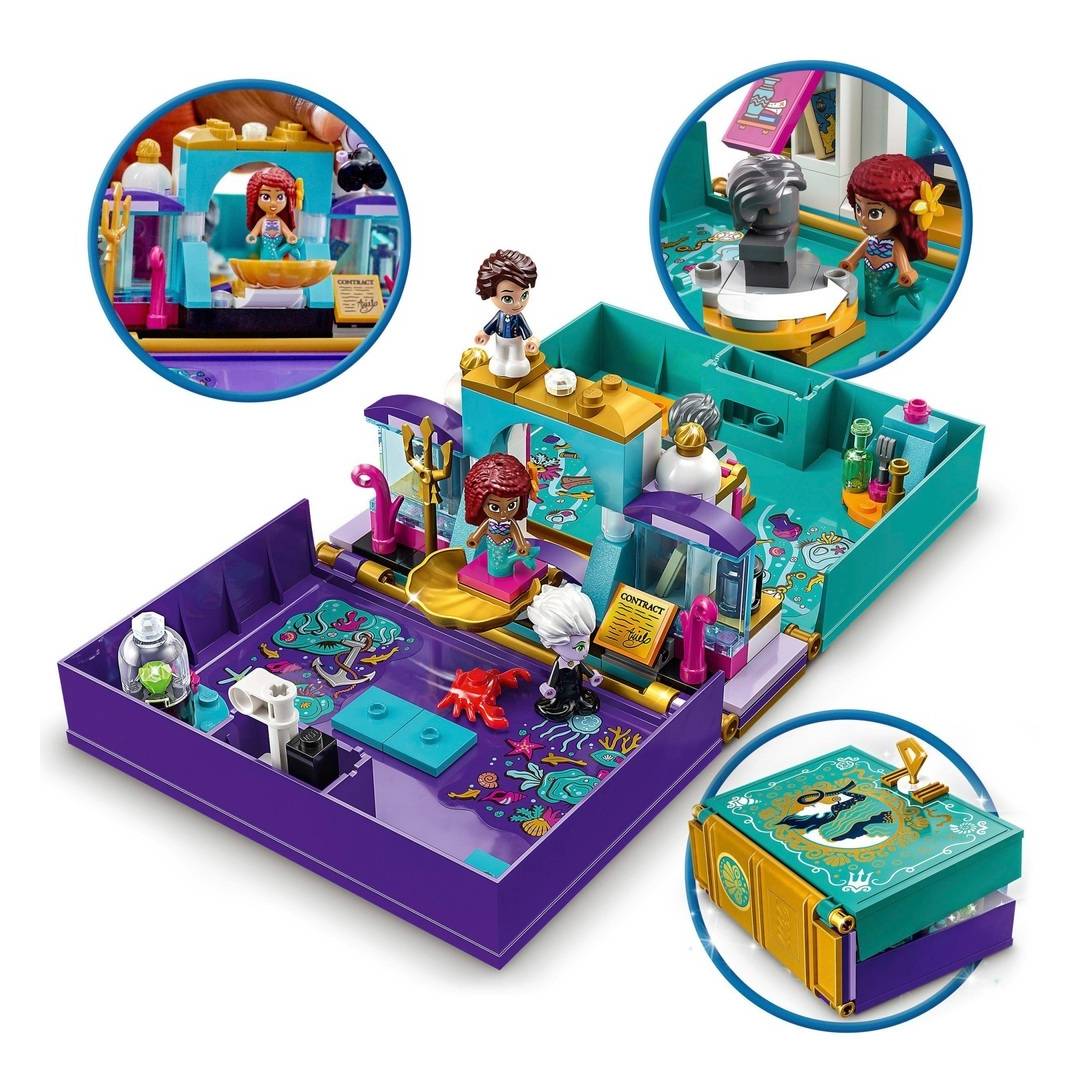 Contiene minifiguras de Ariel y un cangrejo, además de accesorios que enriquecen la narrativa del cuento