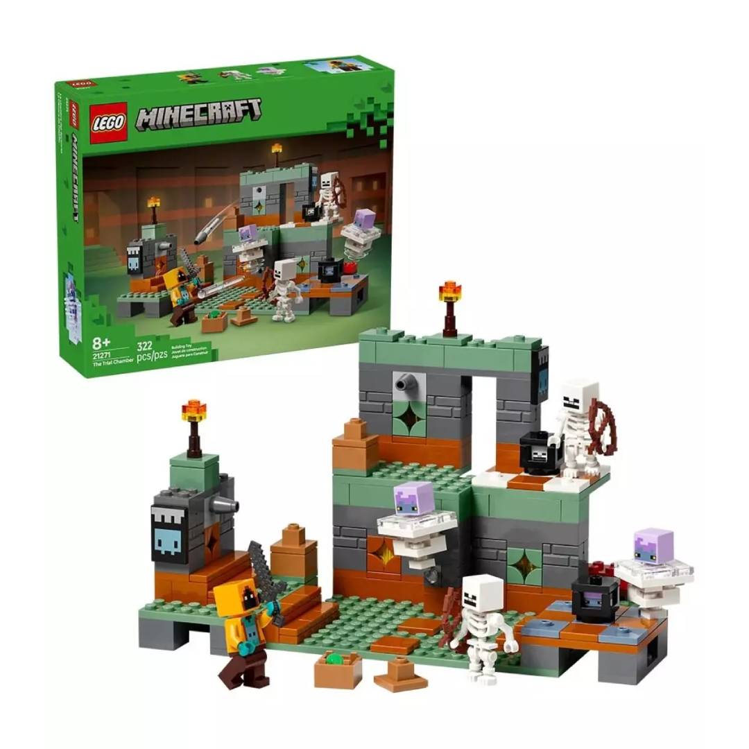 La Cámara de Desafío (21271) es un juguete LEGO Minecraft de alta calidad para niños a partir de 8 años. Este set físico, basado en el videojuego, sumerge a los niños y las niñas en una apasionante misión a la caza de un tesoro donde los jugadores deben combatir criaturas y esquivar misiles conforme avanzan.