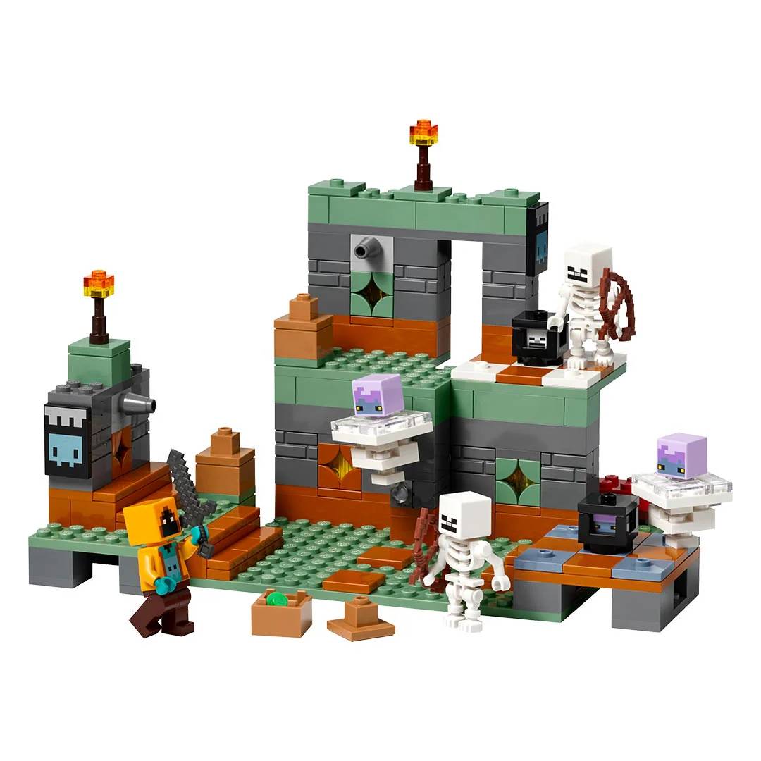 Kit de videojuego LEGO Minecraft: Los jugadores deben combatir criaturas y esquivar misiles mientras construyen y juegan para abrirse camino hacia el tesoro entre esqueletos.
