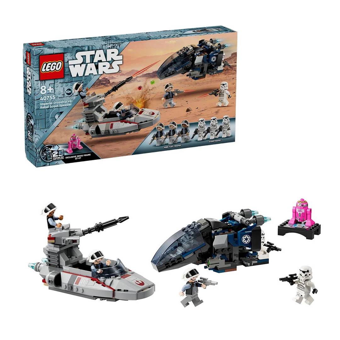 Juego infantil LEGO Star Wars con vehículos construibles de juguete: Construye las flotas de soldados de Star Wars rivales e interpreta emocionantes batallas entre una nave de descenso imperial y un speeder de exploración rebelde.