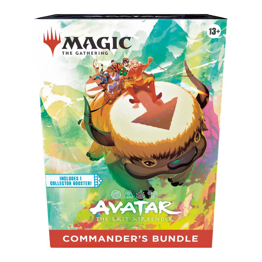 Este bundle maestro une los mejores elementos para los fans de Avatar: la leyenda de Aang con nueve sobres de juego, tierras básicas con arte completo increíbles y un sobre de coleccionista repleto de cartas raras o raras míticas, foil y otras sorpresas con mucho estilo. Pero eso no es todo: los jugadores de Commander se toparán con cartas esenciales temáticas de Avatar (Anillo solar, Botas de pies ligeros y Sello arcano), además de dos hechizos clásicos de una lista de diez que son perfectos para todo arsenal de Commander.