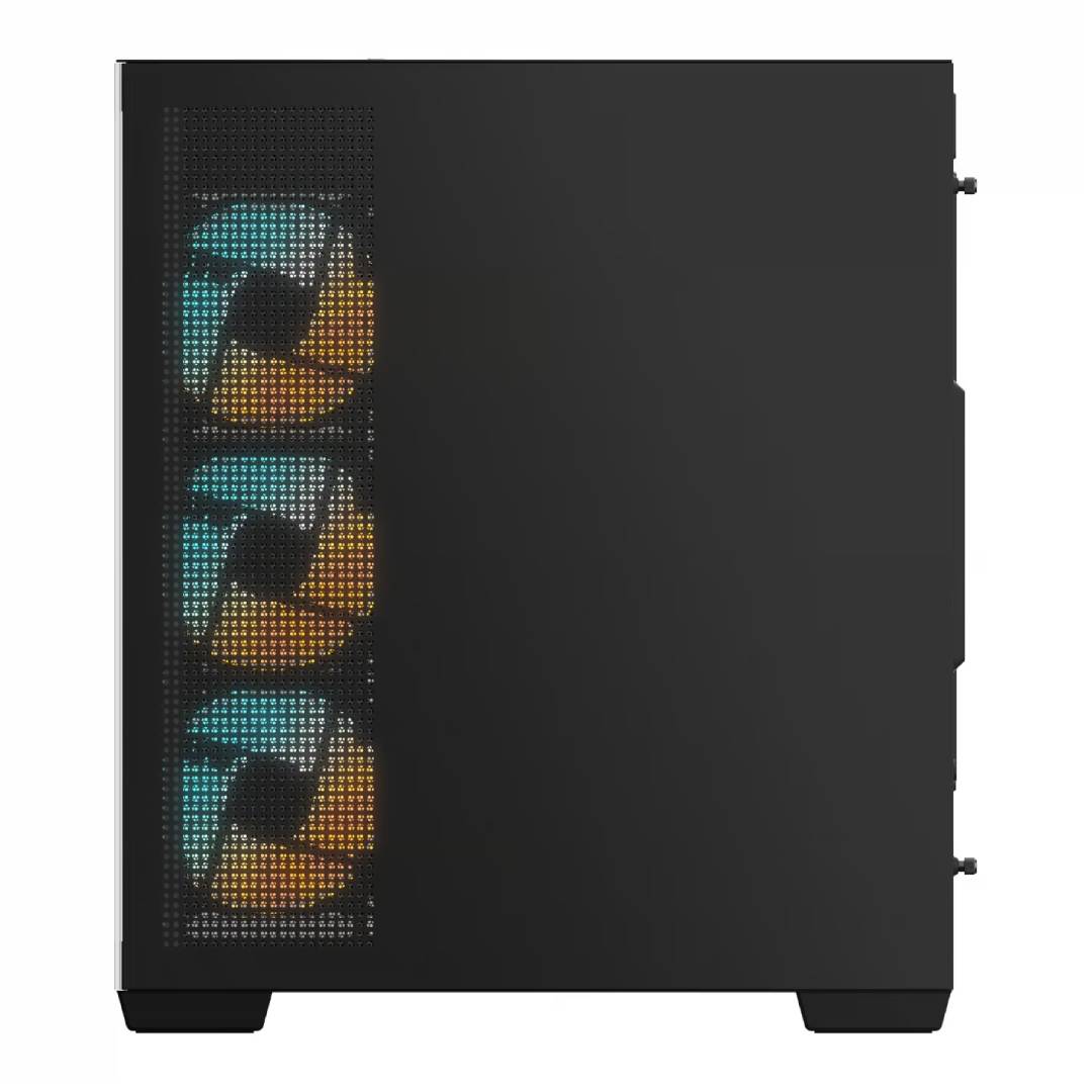 Vista panorámica de 270° con paneles de vidrio templado de 4 mm en frontal y lateral para exhibir el hardware con estilo.