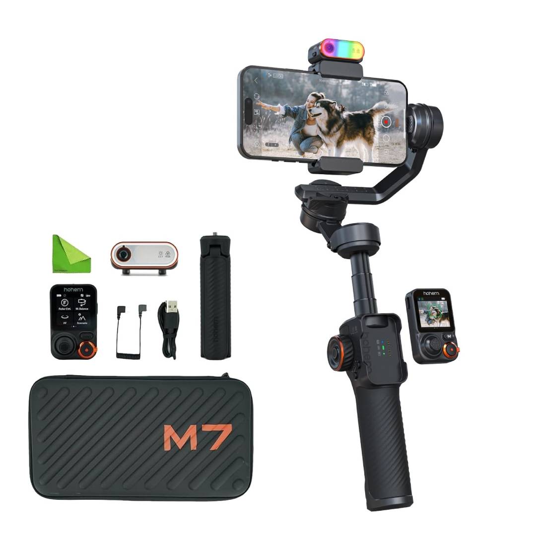 El Hohem iSteady M7 en color negro es un estabilizador de 3 ejes de gama profesional diseñado para cineastas móviles y creadores de contenido. Destaca por su alta capacidad de carga, su pantalla táctil OLED desmontable y un sistema de seguimiento por IA que funciona de forma independiente a cualquier aplicación.