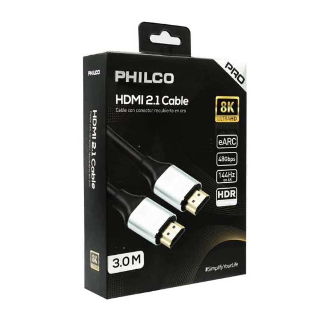 El cable HDMI 8K Philco de 3.0 metros es perfecto para obtener una transmisión de video y audio de alta calidad, compatible con dispositivos que soportan la resolución 8K para una experiencia de entretenimiento inmersiva.