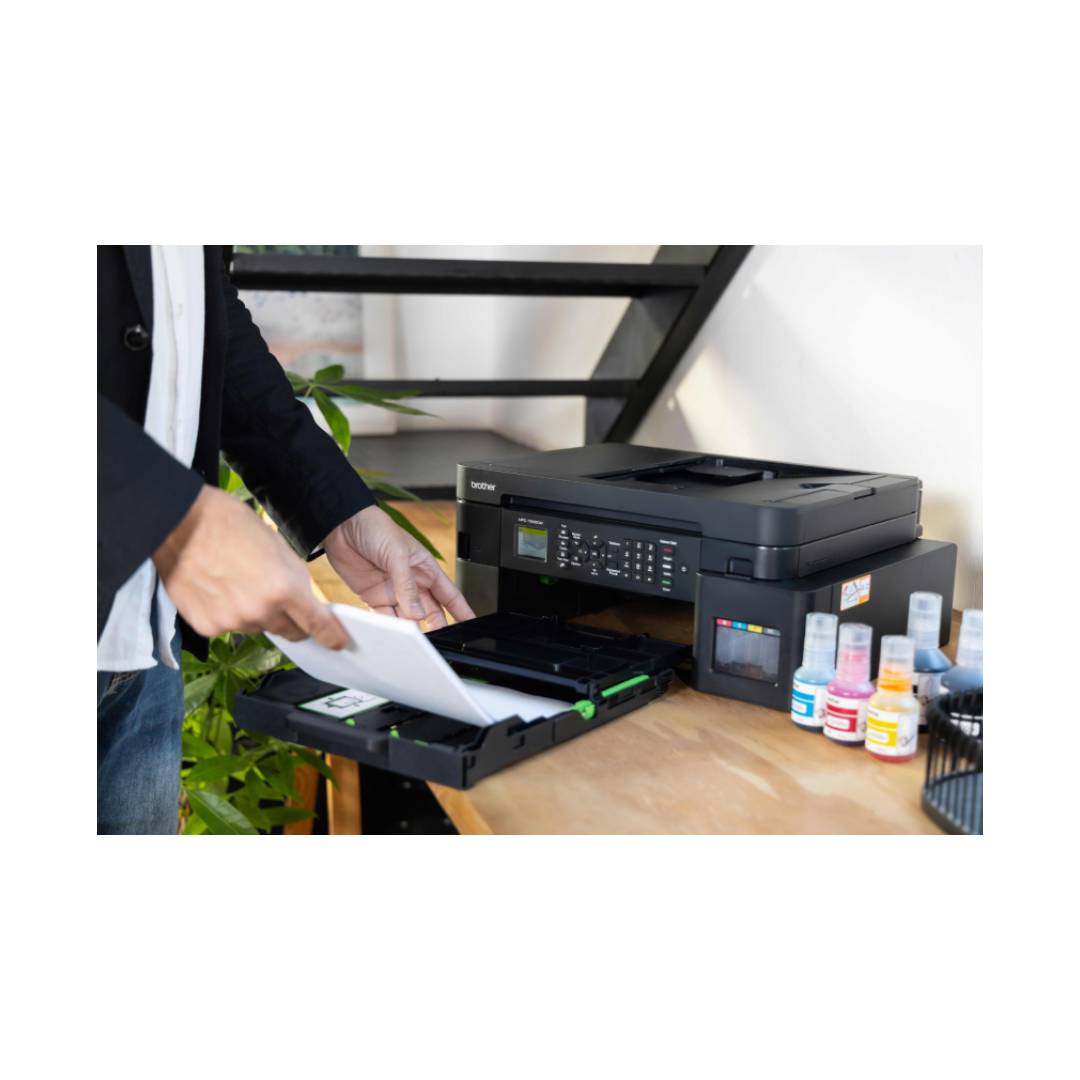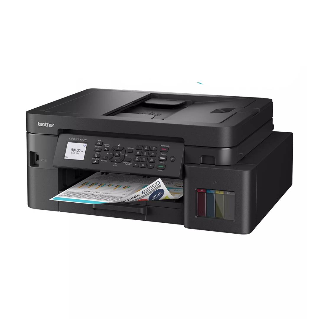 La Brother MFC-T930DW es una impresora multifuncional 4 en 1 que combina impresión, copiado, escaneo y fax en un solo equipo, ideal para hogares, oficinas pequeñas y medianas en Chile. Utiliza tecnología de inyección de tinta con sistema de tanque continuo InkBenefit Tank, lo que permite imprimir grandes volúmenes a bajo costo y con alta calidad. Su diseño compacto y funciones avanzadas, como impresión dúplex automática y alimentador automático de documentos (ADF), facilitan el manejo eficiente de documentos, mientras que su conectividad inalámbrica y por cable ofrece flexibilidad para trabajar desde distintos dispositivos, incluyendo móviles.