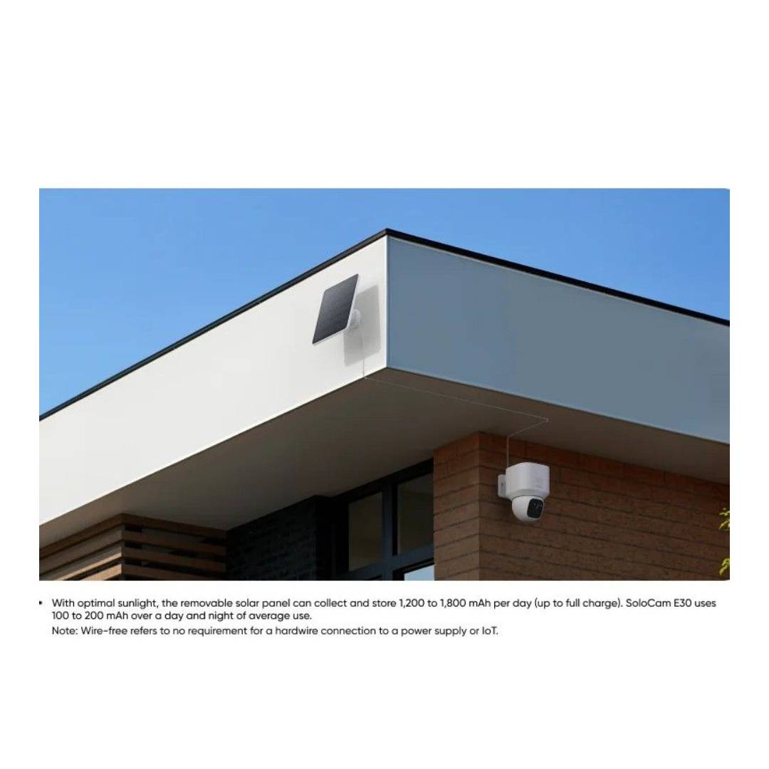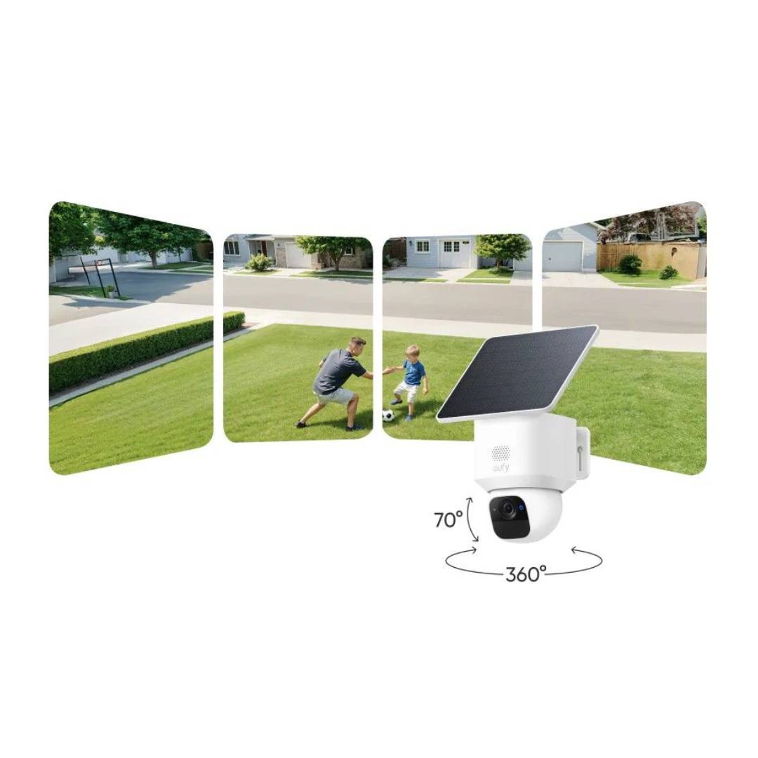 La Eufy SoloCam E30 es una cámara de seguridad exterior diseñada para quienes buscan una solución autónoma, inteligente y libre de cables. Su panel solar integrado mantiene la batería cargada diariamente, incluso en condiciones variables de luz solar típicas, permitiéndote disfrutar de vigilancia continua sin preocuparte por recargas ni mantenciones constantes. Con su resolución 2K, la cámara entrega imágenes claras y detalladas capaces de capturar rostros, objetos e incluso placas cercanas con nitidez.