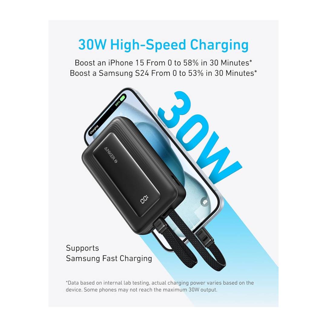 Carga Rápida de 30W: Su puerto y cable USB-C ofrecen una salida de 30W, capaz de cargar un iPhone 15 o un Samsung S24 a más del 50% en solo 30 minutos.