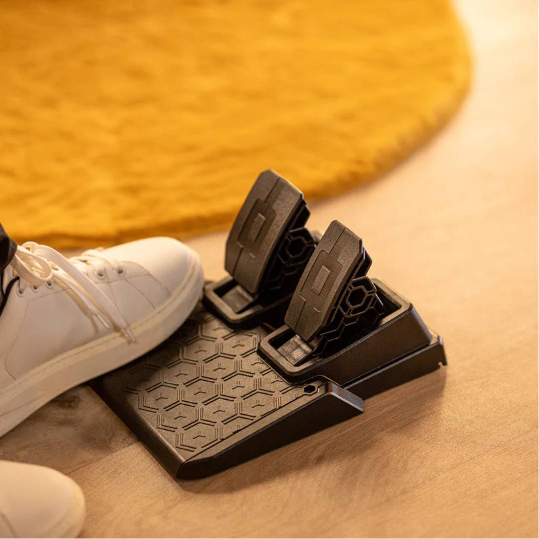 Se incluye un juego de 2 pedales con acelerador y freno. Los pedales cuentan con sensores con efecto Hall H.E.A.R.T. de Thrustmaster para garantizar que el producto mantendrá su precisiĂłn nĂtida durante años. El diseño compacto del juego de pedales permite su instalaciĂłn y uso incluso en espacios pequeños.