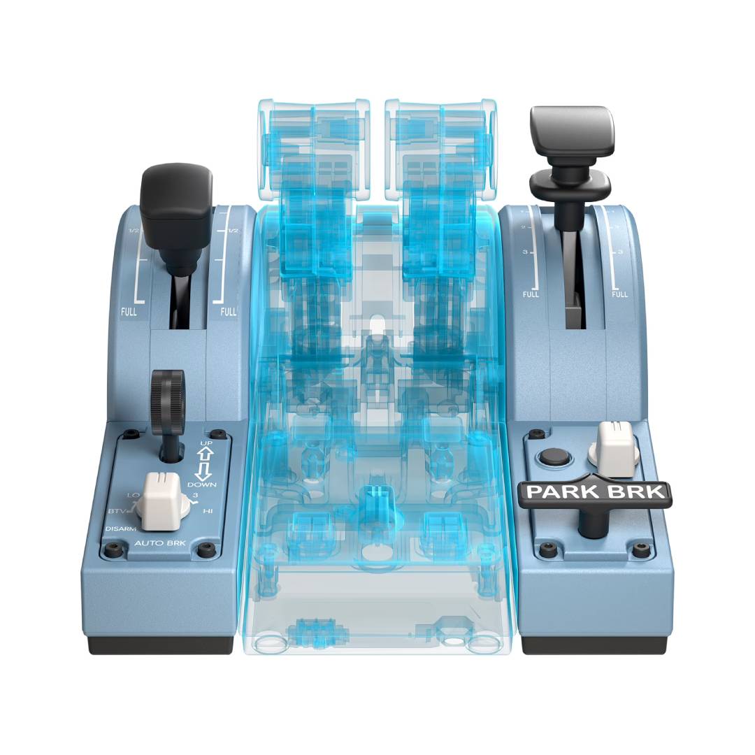 Thrustmaster ofrece un accesorio realmente digno del TCA Quadrant Airbus Edition (vendido por separado), también con licencia oficial de Airbus: el TCA Quadrant Add-On Airbus Edition.