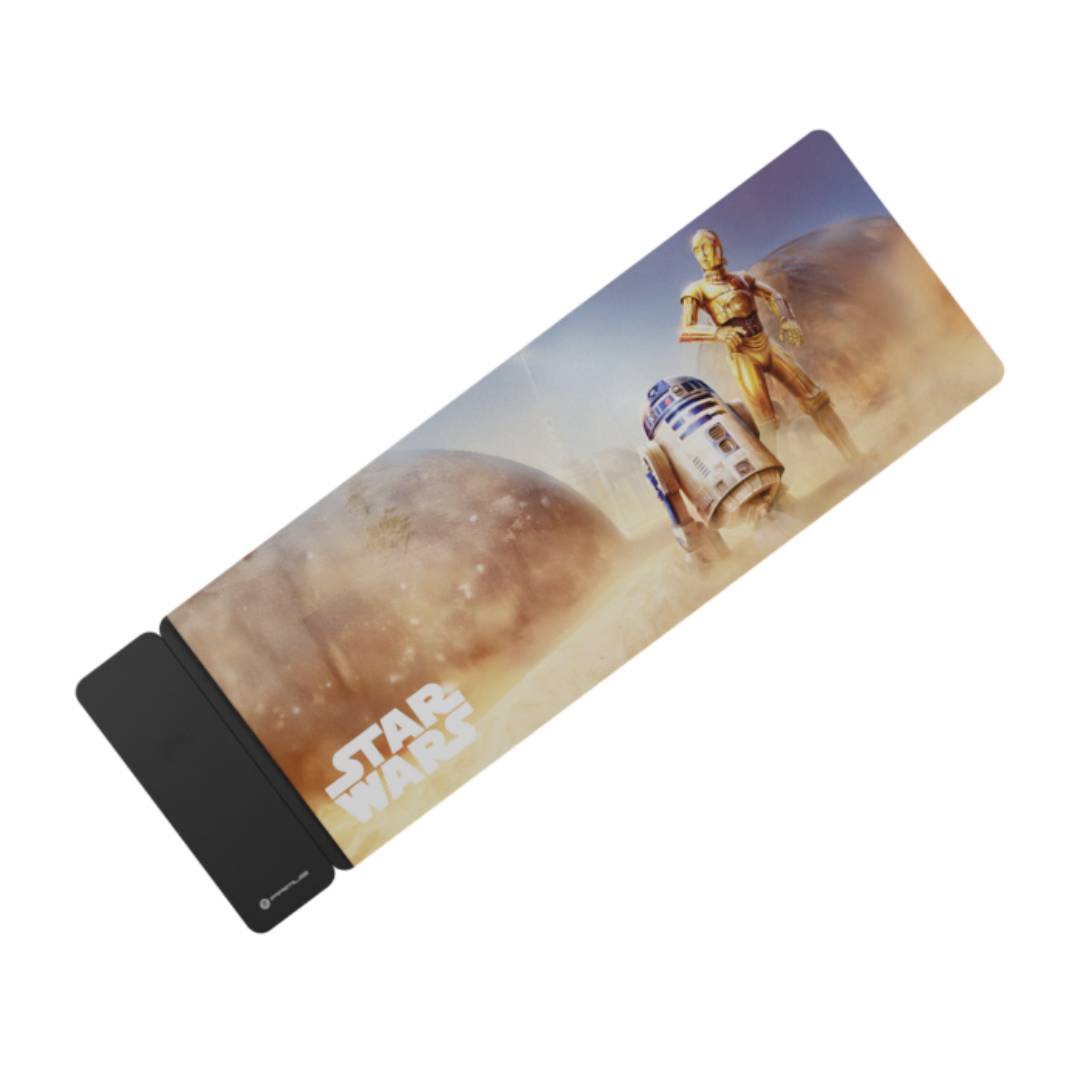 El Mousepad con Base de Carga Inalámbrica Primus Arena Pro Star Wars Limited Edition, R2-D2/C-3PO (modelo PMP-S17DR-XL) es una alfombrilla para gaming de tamaño XL diseñada para ofrecer precisión y velocidad, e incluye una estación de carga inalámbrica magnética de 15W.