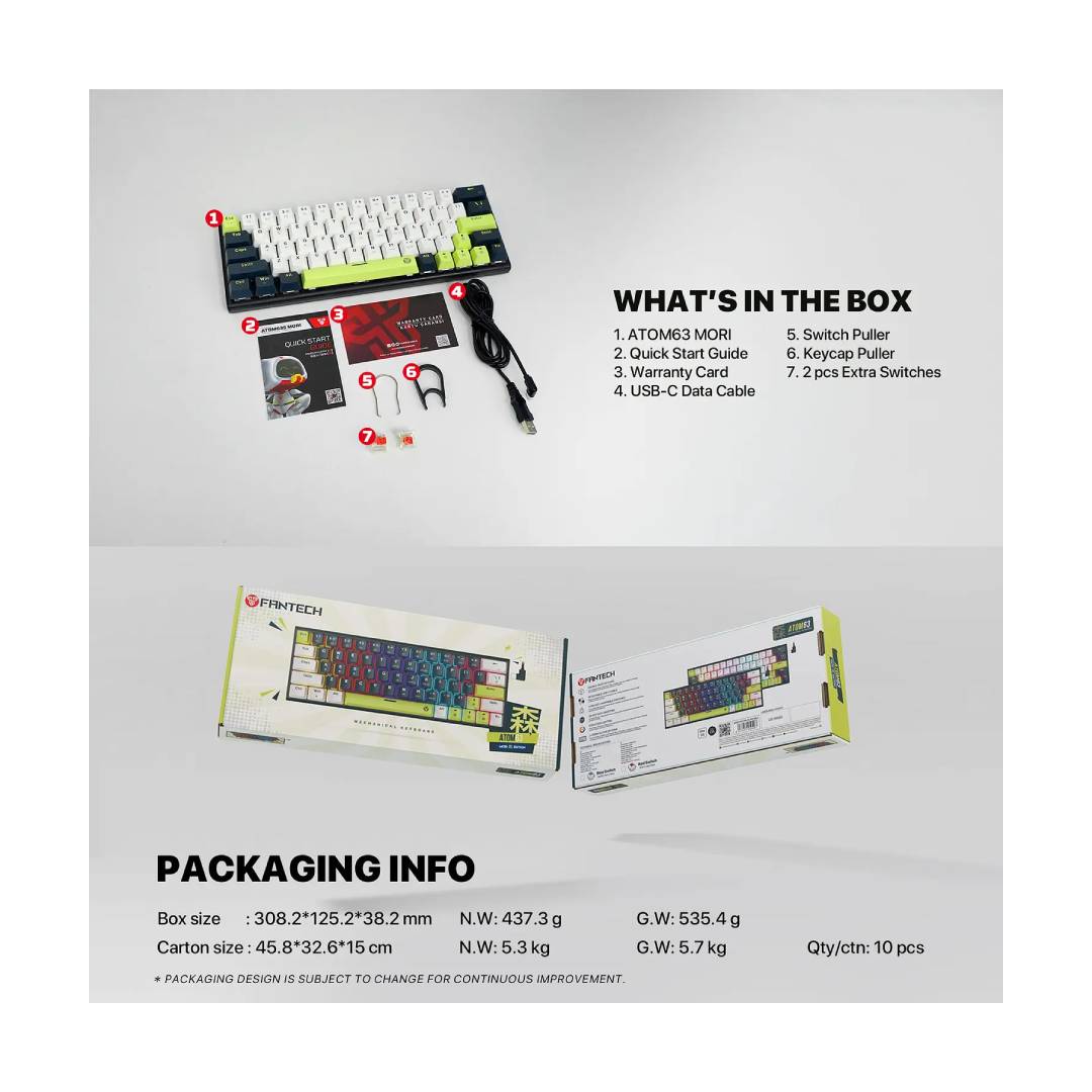El Fantech ATOM62 MK874V2 Edición MORI es un teclado mecánico 60% que combina rendimiento, estética y personalización total. Diseñado para gamers, creadores y amantes del estilo minimalista, es ideal para setups modernos y funcionales.