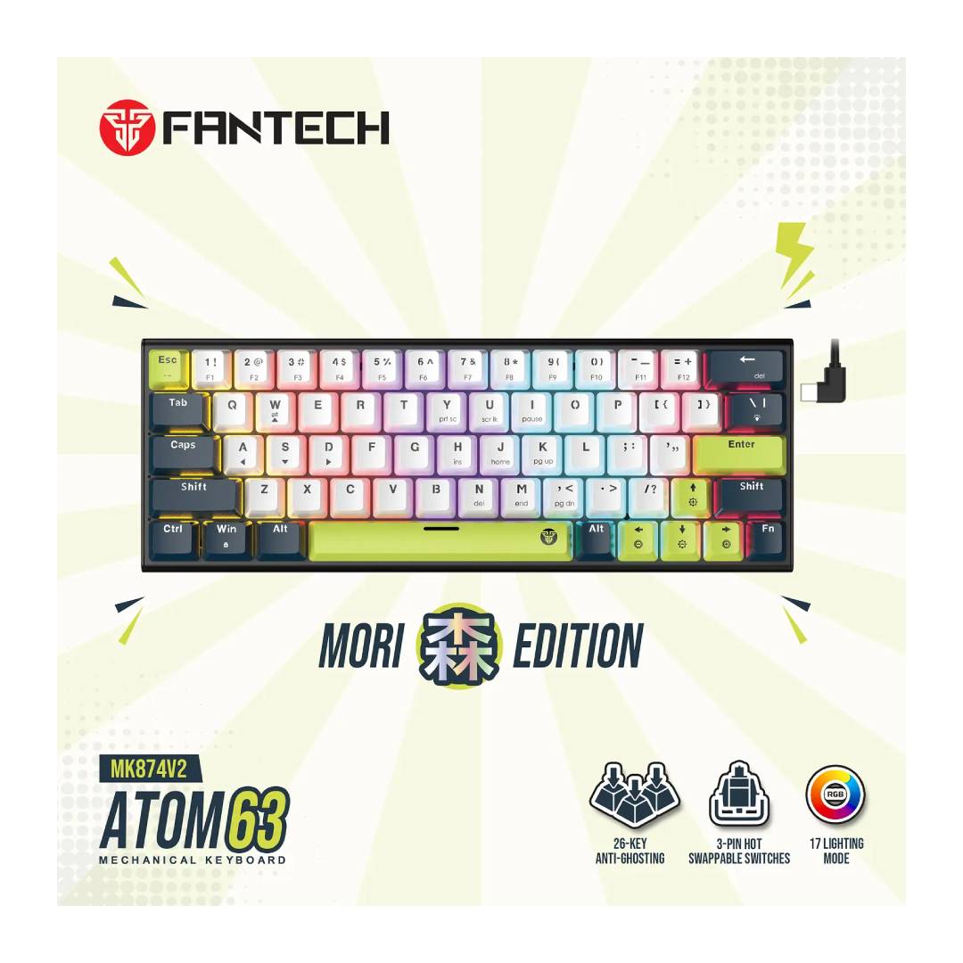 El Fantech ATOM63 MK874V2 Edición MORI es un teclado mecánico 60% que combina rendimiento, estética y personalización total. Diseñado para gamers, creadores y amantes del estilo minimalista, es ideal para setups modernos y funcionales.