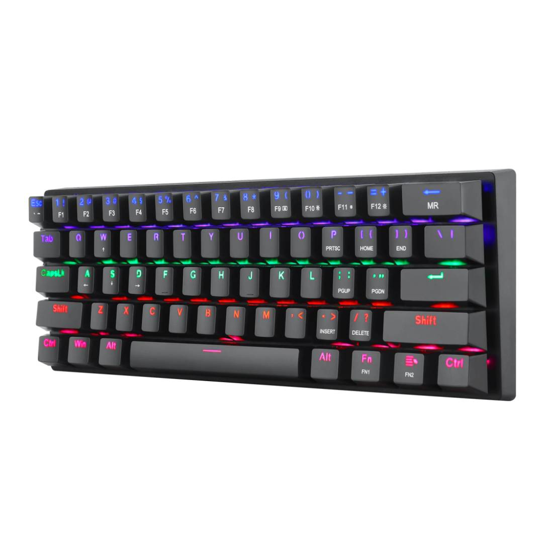 Diseño compacto 60% con 61 teclas, optimizando el espacio y facilitando la movilidad.