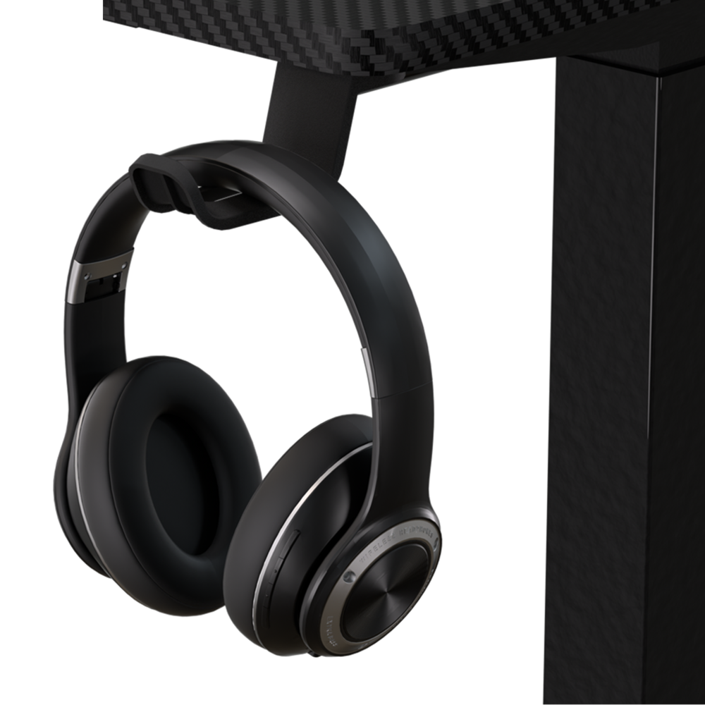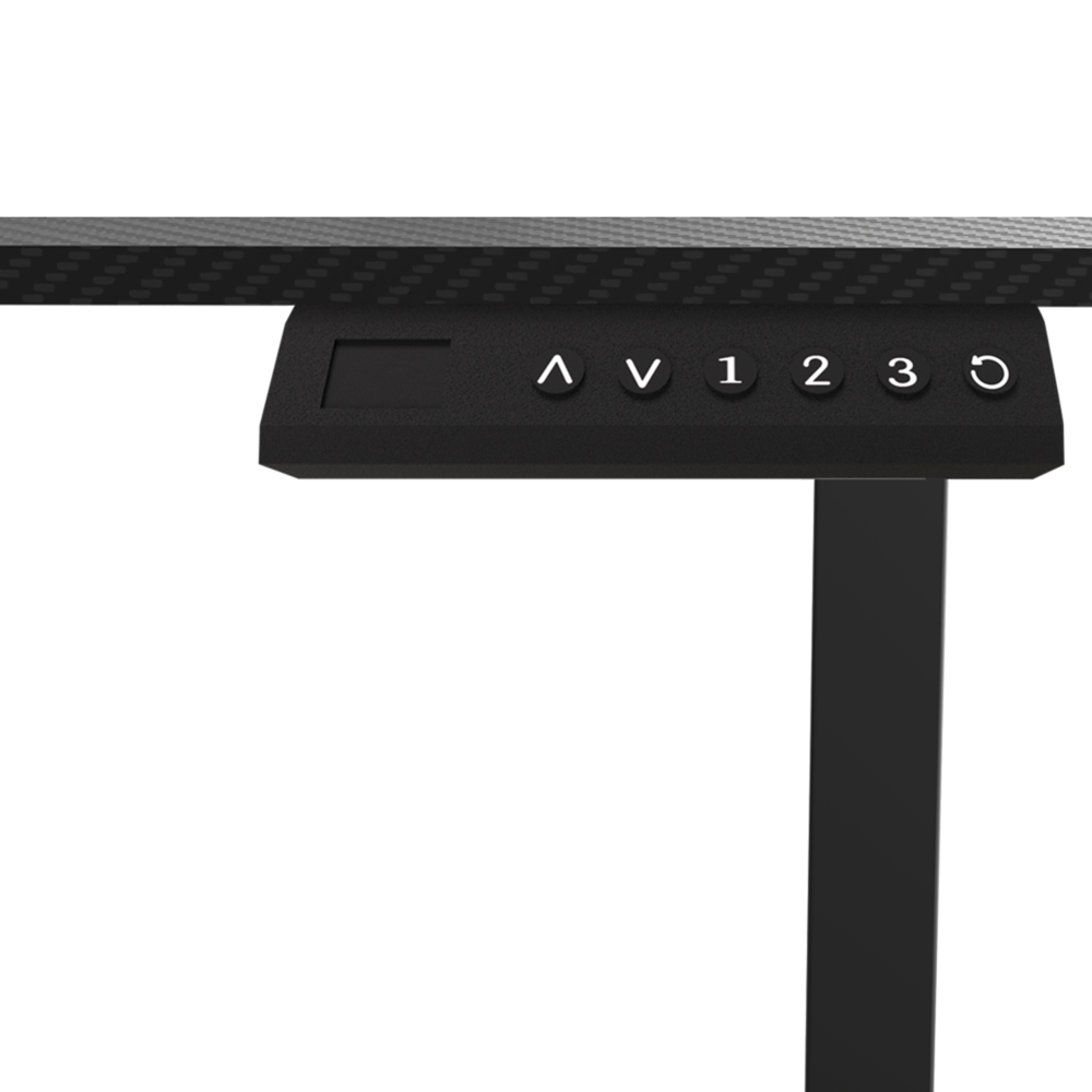 Además de su versatilidad en altura, el escritorio cuenta con una superficie de 140×60 cm que ofrece espacio suficiente para trabajar, jugar y crear. Su acabado simulando la fibra de carbono le otorga un toque estético único, mientras que el amplio administrador de cables en la parte inferior mantiene tu espacio ordenado y libre de desorden.