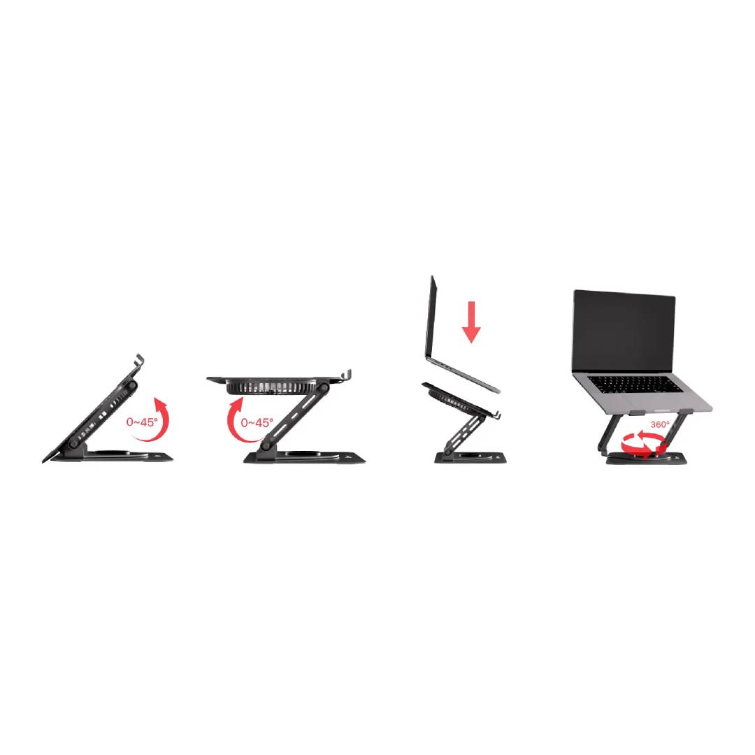 Compatible con notebooks desde 11 a 17 pulgadas, soporta hasta 10 kg y ofrece una estructura premium hecha para durar.