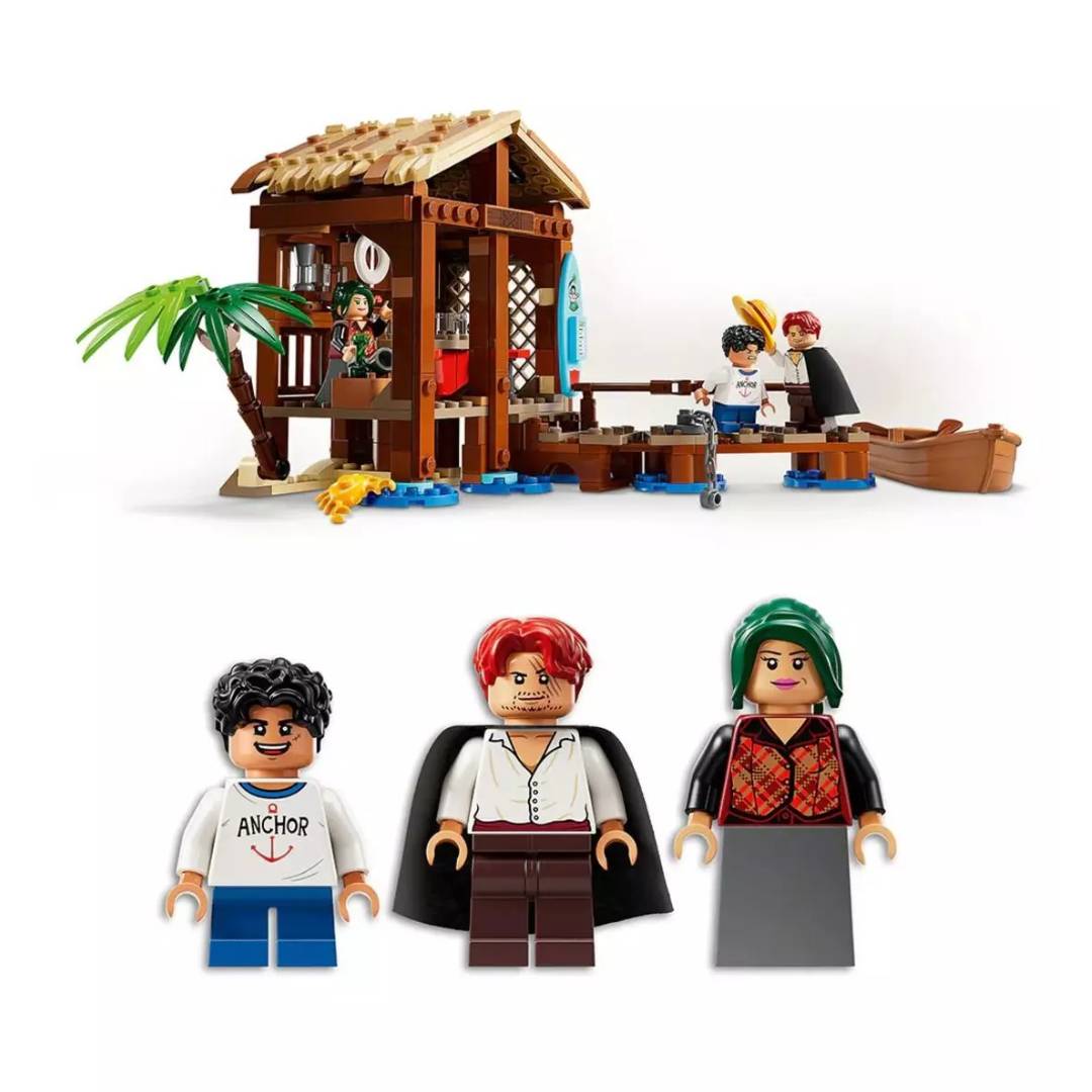 Los niños pueden quitar el techo del establecimiento de la playa para acceder a su divertido interior. Dentro, encontrarán accesorios para atender y entretener a los clientes. Hay un cartel de “Se busca” para colocarlo en la pared, así como espacio para los demás carteles de “Se busca” incluidos en otros modelos LEGO ONE PIECE (a la venta por separado). Fuera, hay un bote pirata de juguete encadenado al embarcadero. El set cuenta con minifiguras de Luffy, Shanks y Makino, 3 memorables personajes de la serie de Netflix. Para disfrutar también de diversión en modo digital, los constructores pueden usar la intuitiva app LEGO Builder.