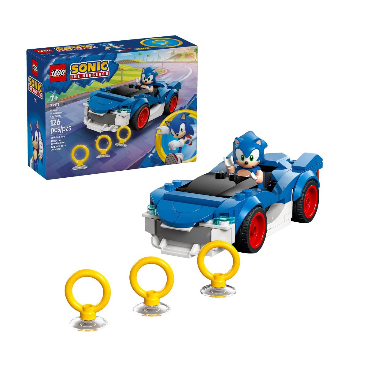 A los niños a partir de 7 años les esperan vertiginosas aventuras automovilísticas con el set de construcción LEGO Sonic the Hedgehog Sonic: Speedster Lightning (77117). Basado en el videojuego de consola Sonic Racing: CrossWorlds, los niños, las niñas y los fans de los videojuegos podrán competir y recoger los 3 Rings dorados con una minifigura de Sonic y su pícara expresión facial.